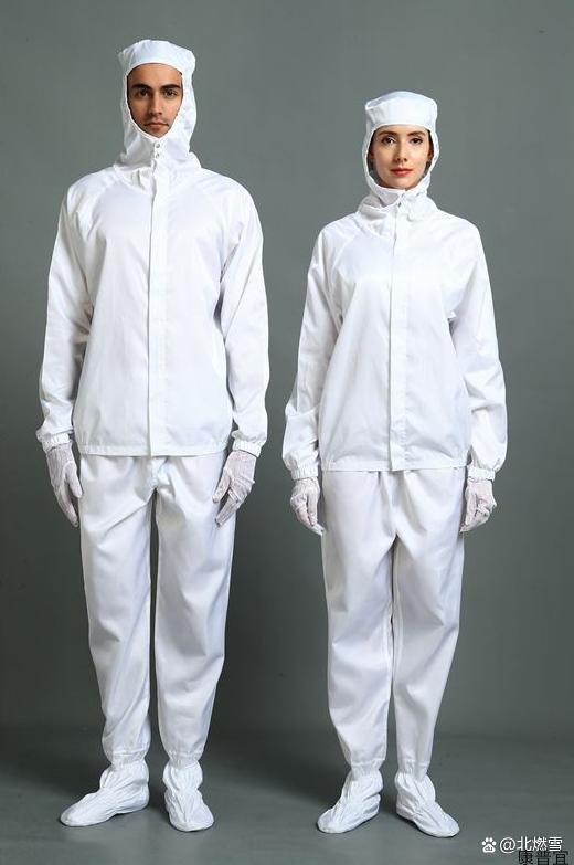 使用超细涤纶长丝和导电纤维复合面料做成的洁净防护服,不发尘、不吸尘、阻隔性好、密度高,强度好,耐高温,同时还采用包缝工艺,有效避免纤维暴露和脱落。